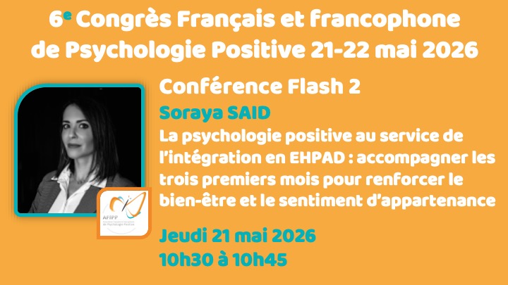 Cette communication explore comment la psychologie positive peut être mobilisée comme un levier concret pour soutenir cette phase d’accueil. À travers des outils pratiques et des exemples de terrain, elle met en lumière des actions favorisant le lien social, l’engagement des résidents et leur appropriation du lieu de vie.
